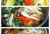 재료 : 닭, 단호박, 마늘, 생강, 삼계탕용 재료 한봉지, 찹쌀, 부추, 파, 소금, 후추