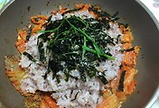살짝 볶은 후 크림소스를 넣어 볶습니다.