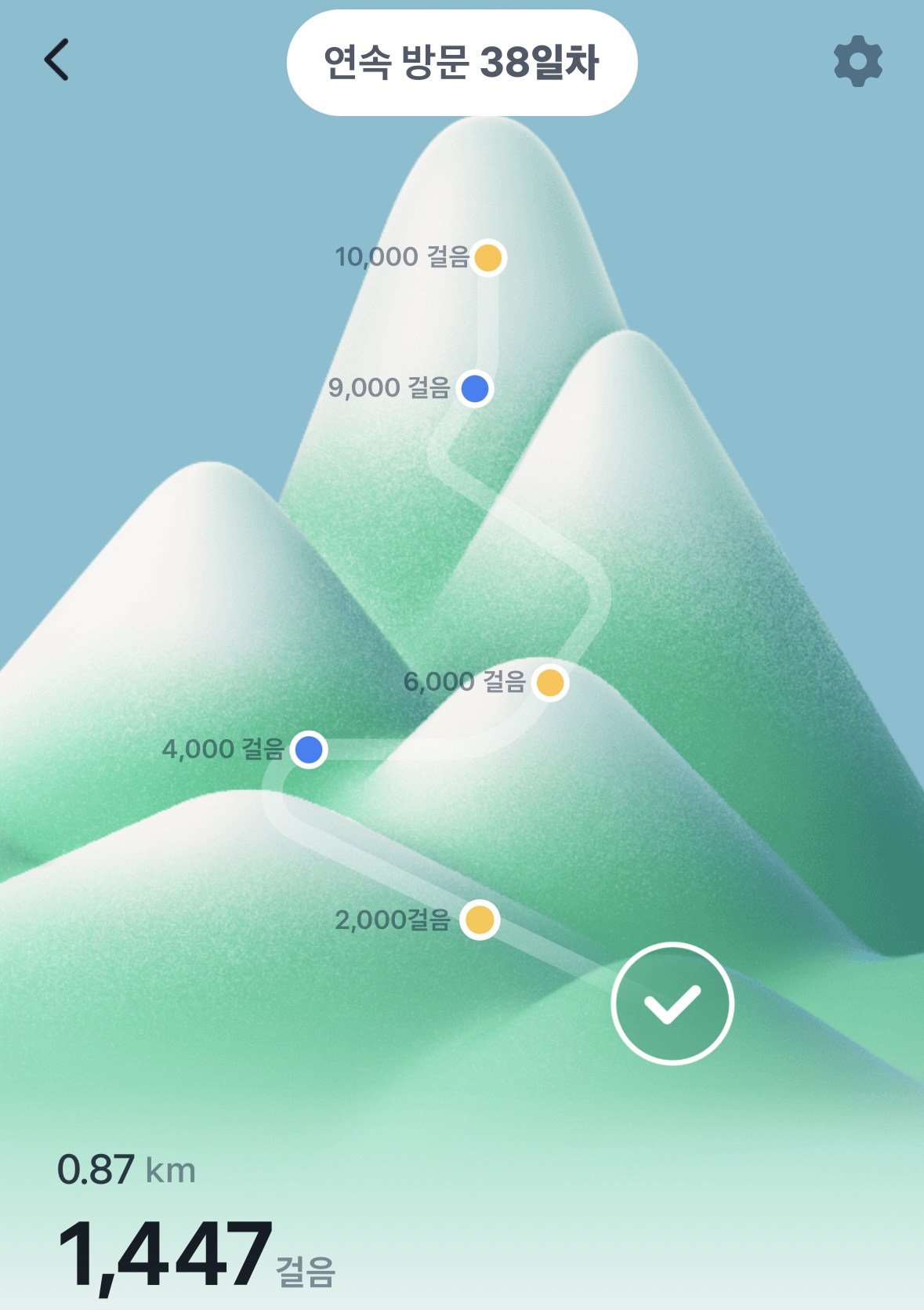 목표 걸음수가 되면 오른쪽 중간에 복권이 움직입니다.