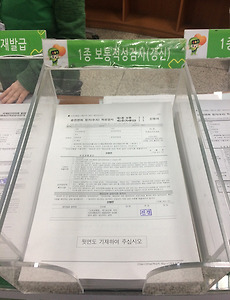 #갱신1 운전면허 적성검사 운전면허 적성검사 날짜가 되었습니다. 문자가 와서 알게 되었어요... 전에 한번 했는데 기억이 정확이 안나요... 신체검사라고 몇천원내고 앉았다 일어나고 손쥐었다 폈다 했던것 같아요... 이번에 블로그에 글 올리면서 기억하려고요... 전 서울 서부면허시험장으로 갔고 오후 4시쯤 갔는데 사람이 없어서 갱신 하는데 20분 정도 걸렸어요. 준비물 : 신분증, 3*4 증명사진 1장(최신 촬영본 이전 면허증에 있는 사진은 안되요!), 12500원(카드 결제도 되요) 입구로 들어가니 가운데 민원안내데스크가 있더라고요. 아래 사진에 양식을 작성합니다. 앞뒤로 본 서류를 작성하고 만약 건강검진을 최근에 받으신적이 있다면 2번 창구로 가세요 그곳에서 신분증과 위 작성한 양식을 주면 검색해보고 건강검진 자료가 있으면 양식.. 2016. 12. 28. 이전 1 다음