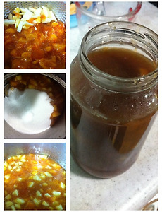 단감1 감쨈 감이 냉장고에서 언제 절 드실껀가요? 하고 있었어요... 저는 감 별로 안좋아하거든요 ㅋㅋ 한동안 대봉에 빠졌던적이 있지만 이젠 그닥... 그래서 궁리 끝에 쨈을 만들기로 했습니다. 만드는 사람마다 방법이 다 달라서 그냥 예전에 배쨈 만들던 방법으로 만들어 봤습니다. 재료 : 껍질깐 감, 사과, 설탕, 꿀, 계피 감은 껍질을 잘 제거하여(껍질이 들어가면 떫어진데요) 곱게 가시던지 아님 가위로 뭉텅뭉텅(??) 써시던지 선택하시고(전 가위로 뭉텅뭉텅) 사과를 깍뚝썰어 같이 넣었습니다. 그리고 감과 설탕의 비율을 2:1로 해서 넣고 꿀을 어른 수저로 5스푼과 계피 파우더 반티스푼을 넣었습니다. 약한불에 반으로 쫄때까지 계속 저어 주었습니다. 유리병은 스파게티 소스가 들어있던거 남겨놔서 그걸 뜨거운물에 소독해서.. 2013. 12. 18. 이전 1 다음