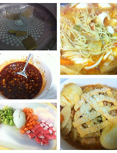 어제 저녁에 퇴근하는데 아내가 나 오늘 떡볶이가 먹고 싶다고 합니다. 때마침 지갑엔 돈이 없어줬고... 집에가서 있는 재료로 라볶이를 작업(??) 해 보았습니다. 재료 : 떡국떡, 어묵, 삶은 계란, 햄, 맛살, 양파, 당근, 브러컬리, 스파개티면, 치즈 고추장, 고추가루, 다진마늘, 올리고당, 간장, 결국 라면스프 반개 ㅋㅋ 1. 다시마를 넣고 국물을 낸다. 2. 양념장(다진마늘, 고추장, 고추가루, 올리고당, 간장, 라면스프 반개)을 국물에 풀어준다. 3. 끓으면 떡, 면 제외한 야채, 삶은 계란 그 외 재료를 넣는다. 4. 어느정도 떡을 넣고 같이 끓인다. 5. 라면은 그냥 넣어 익히면 되지만 이번엔 스파개티면을 써서 따로 80% 정도 삶아서 넣었습니다. 6. 그릇에 담고 슬라이스 치즈를 언고 모짜..