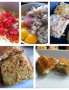 밥전2 라이스샌드위치 찬밥이 남아도 너무 많이 남은거죠... 밥전을 이용해서 샌드위치를 만들어봣어요... 재료 : 찬밥, 계란, 토마토, 양파, 당근, 등등등, 식빵 밥전을 만들듯이 재료를 고루 섞어줍니다. 식빵에 얹을수 있는 사이즈로 밥전을 만들어줍니다. 식빵을 토스트로 굽고 샌드위치 만들듯이 조합을 해줍니다. ㅋ 주의점은 밥전을 얇게 부쳐야 됩니다. 아이들이 먹긴 먹는데 맛있어 먹는 표정은 아닙니다. ㅋ http://ccmlook.blog.me/150174012207 2013. 8. 12. 밥전 찬밥 처리하는 방법!! 찬밥에 냉장고에 있는 야채를 잘게 썰어 계란과 함께 섞는다! 부침개처럼 후라이팬에 넓게 펴 익혀준다. 접시에 담고 케첩이나 마요네즈 혹은 가쯔오브시를 얹어 먹는다. 2013. 2. 14. 이전 1 다음